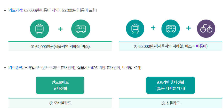대중교통 이용 시 62,000원입니다. 대중교통과 따릉이 이용시 65,000원입니다.