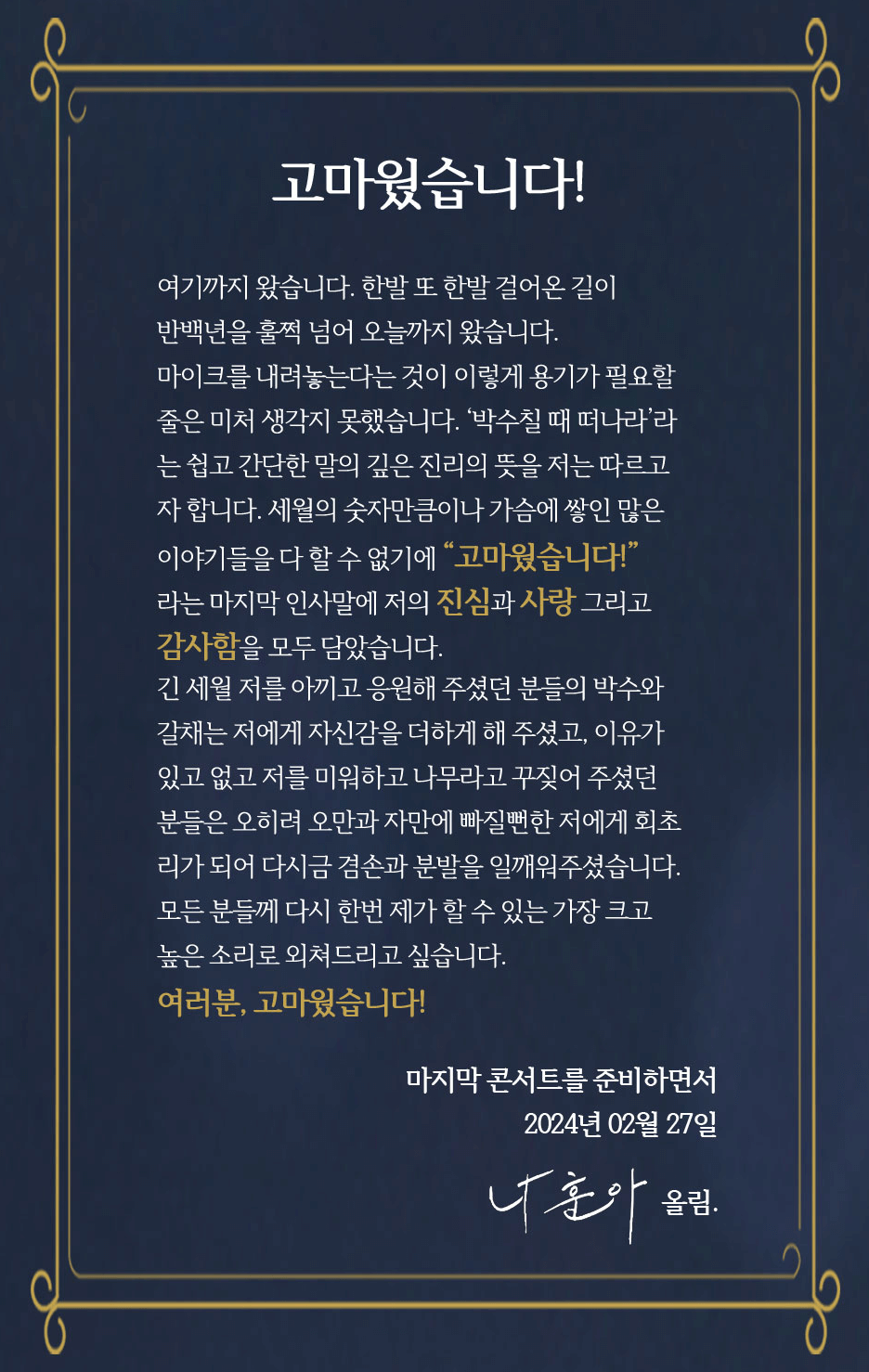 나훈아 콘서트가 58년 만에 막을 내리려고 합니다. 많은 분들이 아쉬워하며 마지막을 함께 하기 위해 많은 분들이 티켓 예매에 집중하며 경쟁이 치열한 상황입니다. 앞으로 나훈아 님 콘서트를 볼 수 있는 마지막 기회이기에 티켓 예매에 성공하기 바랍니다. 앞에서 진행된 나훈아 콘서트는 3분 안에 매진되었기에 시간 확인하고 신청하시기 바랍니다.
