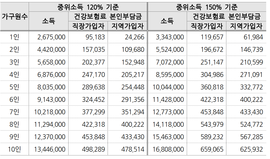 * 본인이 납부하고 있으면 본인납입 건보료 기준, 본인이 피부양자로 되어 있으면 부양저 납입 건보료 기준