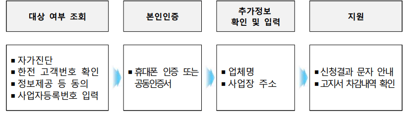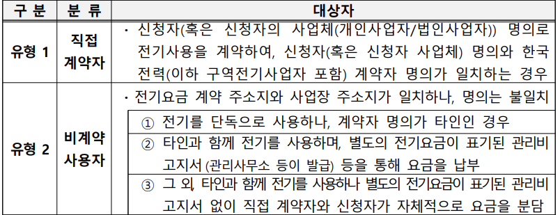 ※ 신청자 정보: 신청자 성명, 사업장 주소지, 사업자 등록번호, 사업장에 적용되고 있는 전기 요금 등