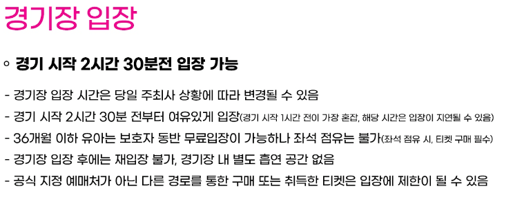 경기장 입장 전에 꼭 알아야 하는 부분들입니다. 예매 성공 하셨다면 읽어보시기 바랍니다.
