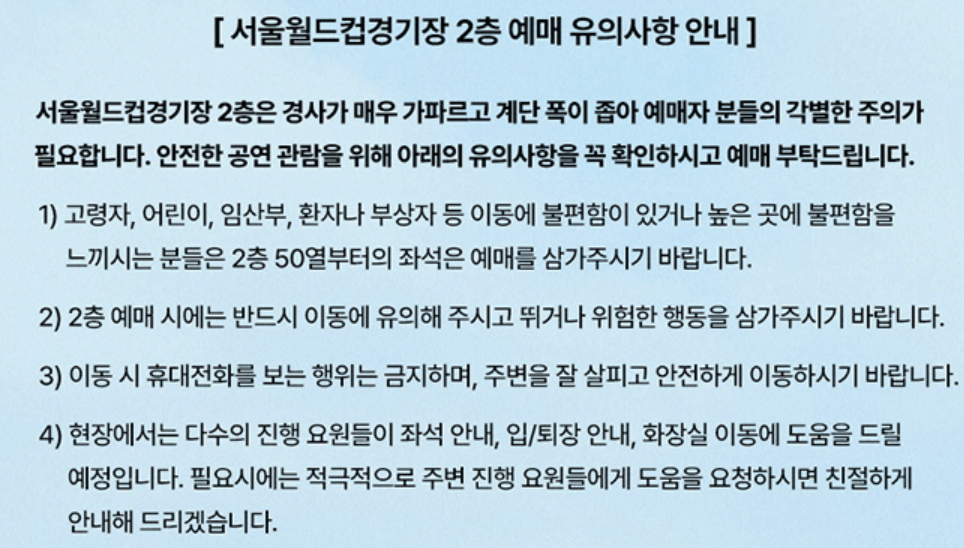 ❗️휠체어석 관객 분들은 서울월드컵경기장 내에 위치한 장애인 주차장 사용 가능합니다.