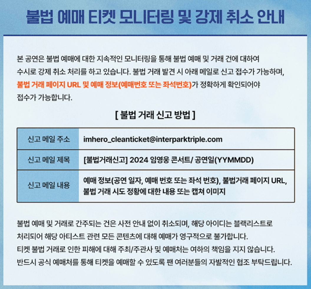 불법 예매 티켓 모니터링 및 강제 취소 안내