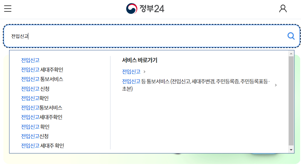 공인인증서 발급 후 정부 24에서 전입신고를 입력합니다.