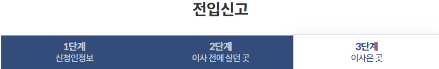 개인정보를 입력한 후 확인을 눌러줍니다. 그러면 전입신고를 1단계~ 3단계까지 순서대로 입력해 줍니다.