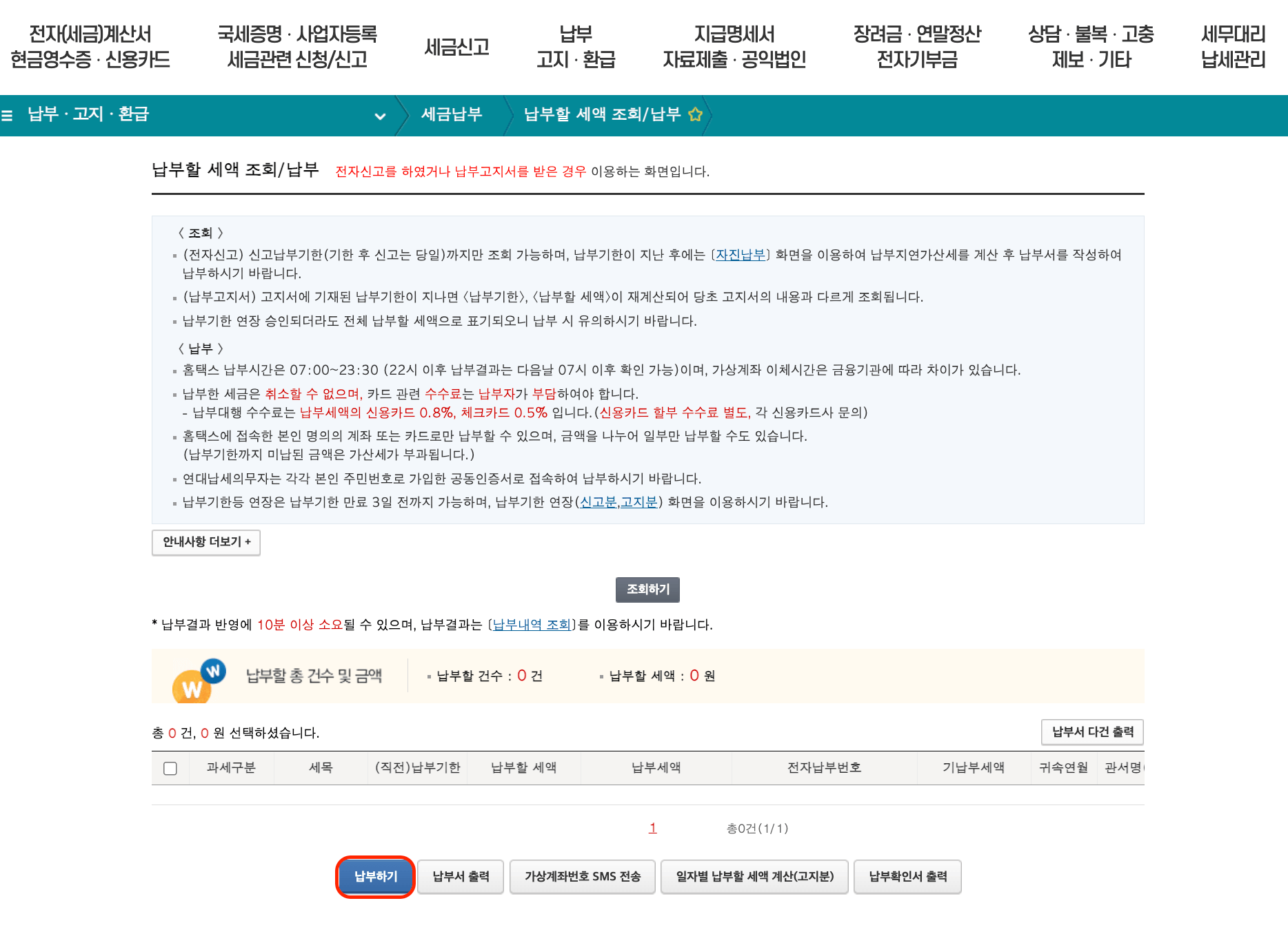이동된 화면에 납부해야할 세액이 있다면 확인 후 납부하기 눌러주시면 됩니다.