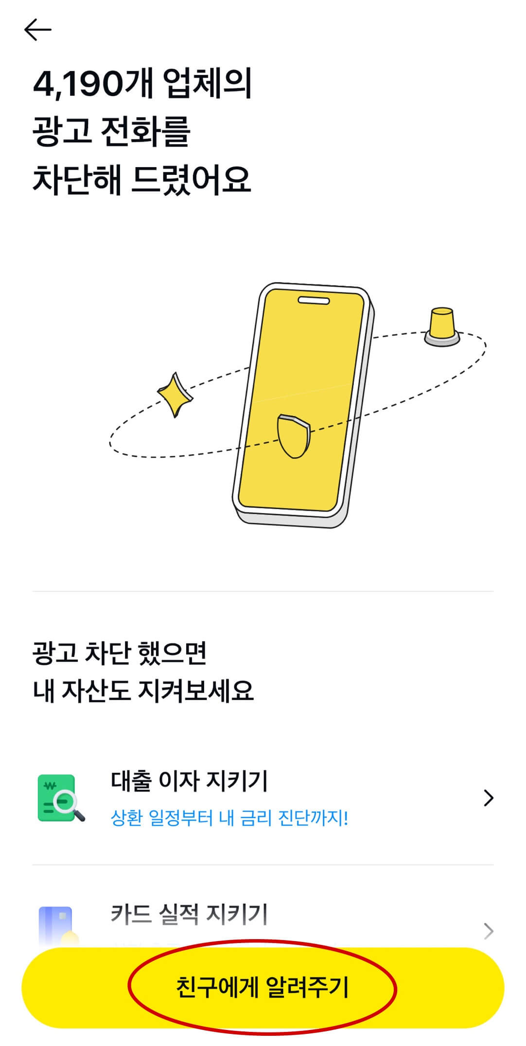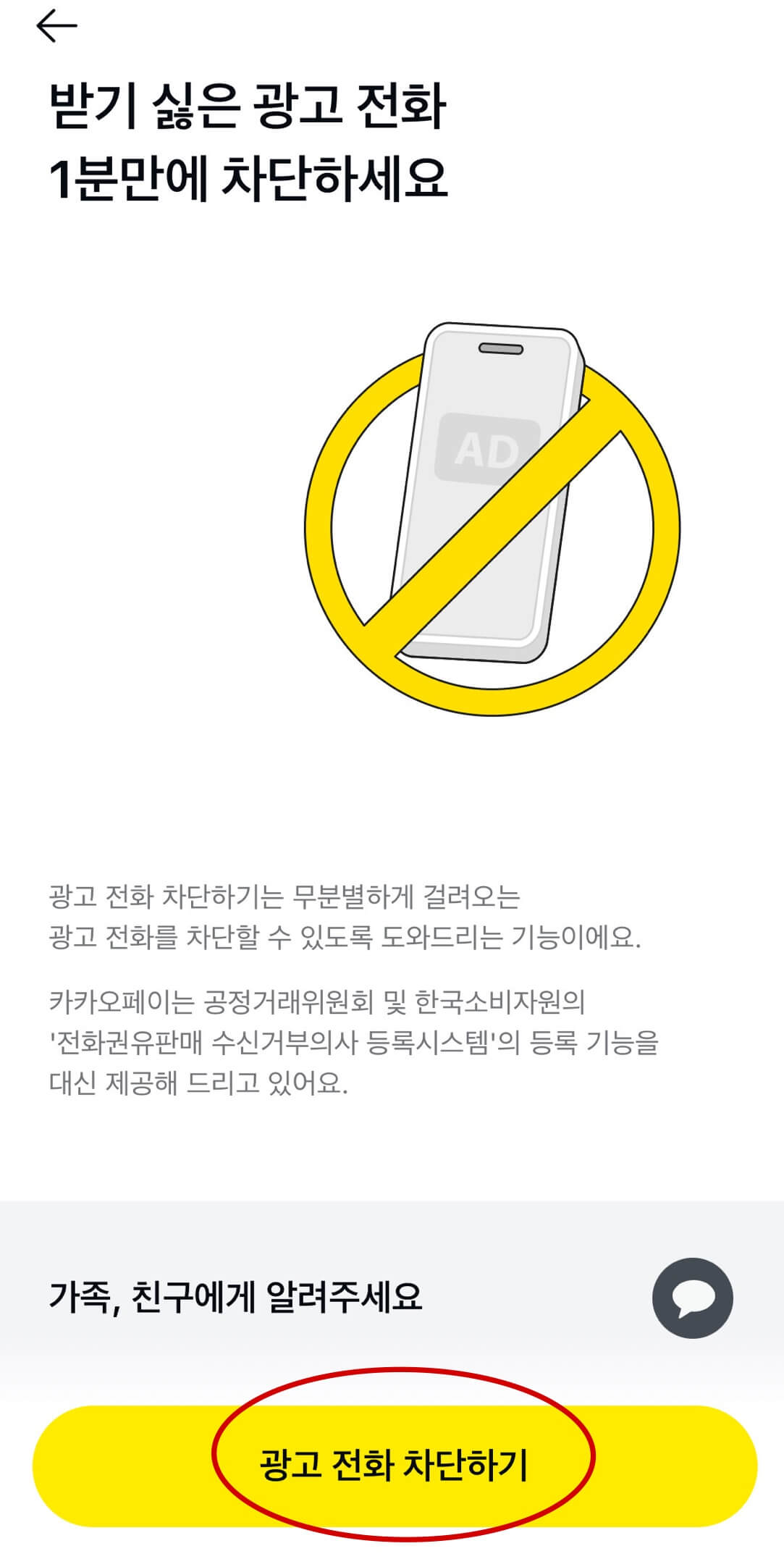 입력 후 차단 된 "업체 전화를 차단해 드렸어요"라고 문구가 나오면 완료입니다. 친구에게 공유할 수 있습니다.