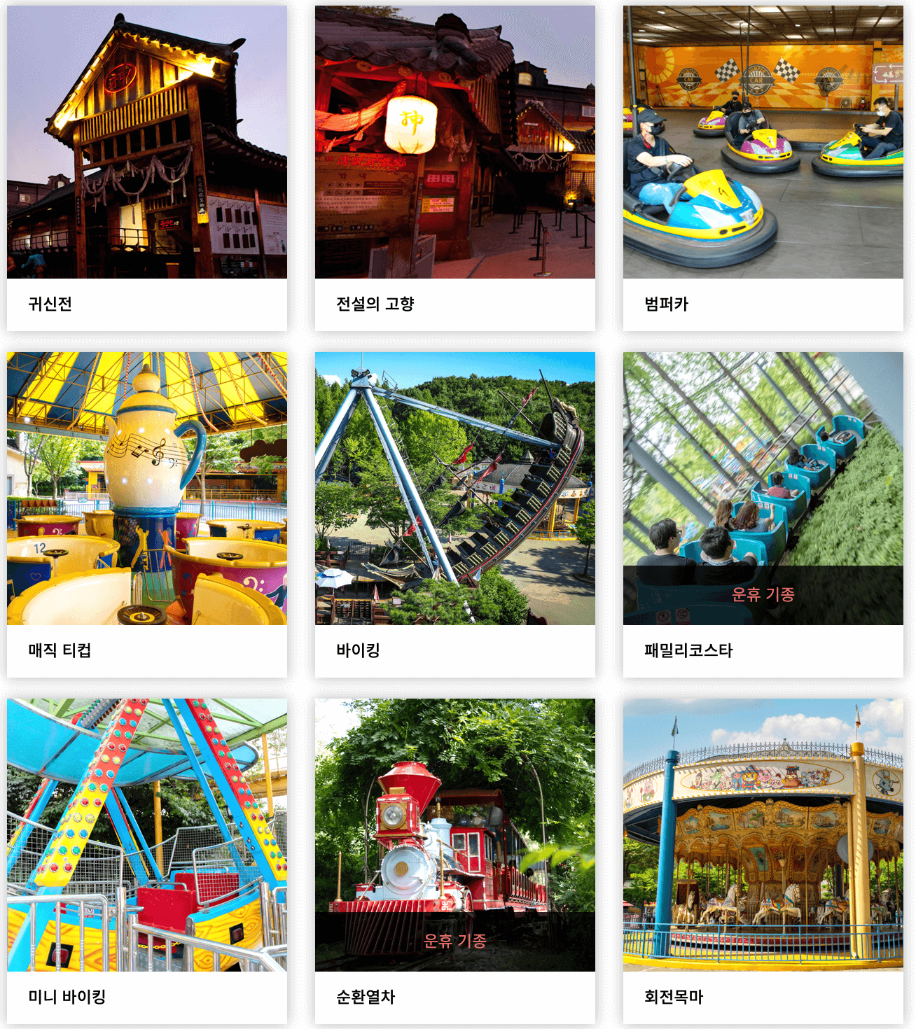 야간이전에는 모든 놀이기구가 운영하지만 야간에는 4가지만 운영합니다. 다양한 놀이기구를 타고 싶은 분들은 야간 이전에 오셔서 즐기시기 바랍니다.