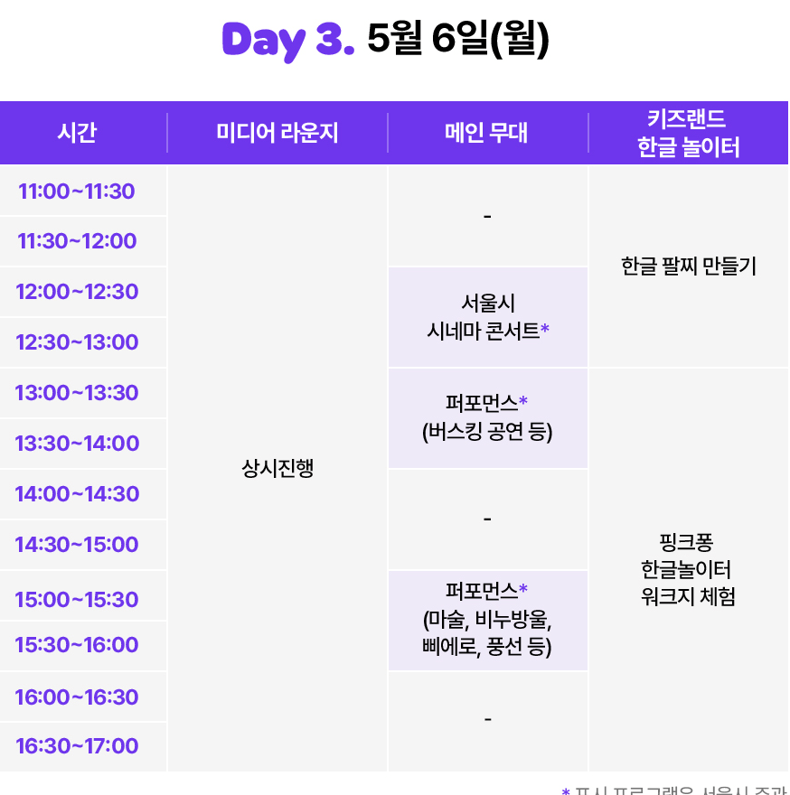 일시: 24. 5. 4.(토) ~ 5. 6(월) 15시 ~ 16시
