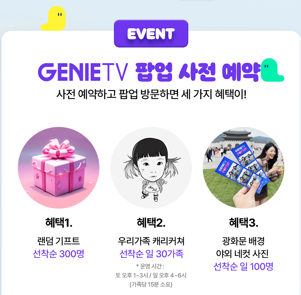 축제를 방문하기 전에 사전 예약자을 하신 방문자한하여 팝업 방문 시 3가지 혜택이 있습니다. 예약자에 한해 선착순으로 진행하기에 서둘러 예약하시기 바랍니다.