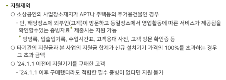 - 소상공인의 사업장이 주택 또는 아파트 주거용 건물인 경우 지원 대상에서 제외됩니다.