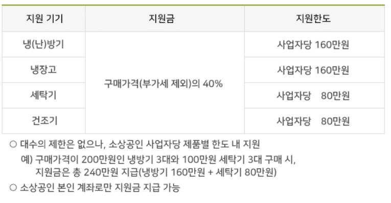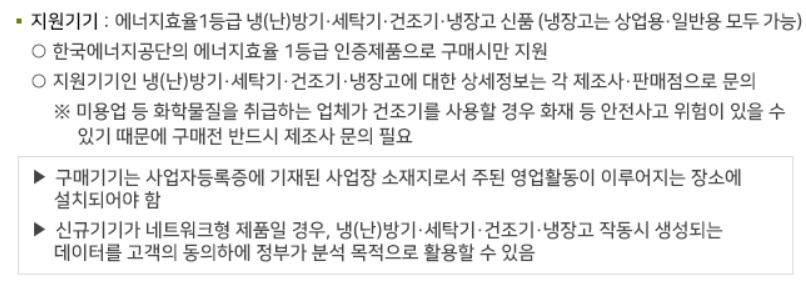 사업장애 고효율기기인 냉안방기 등 신규로 설치하는 소상공인이 지원대상입니다.